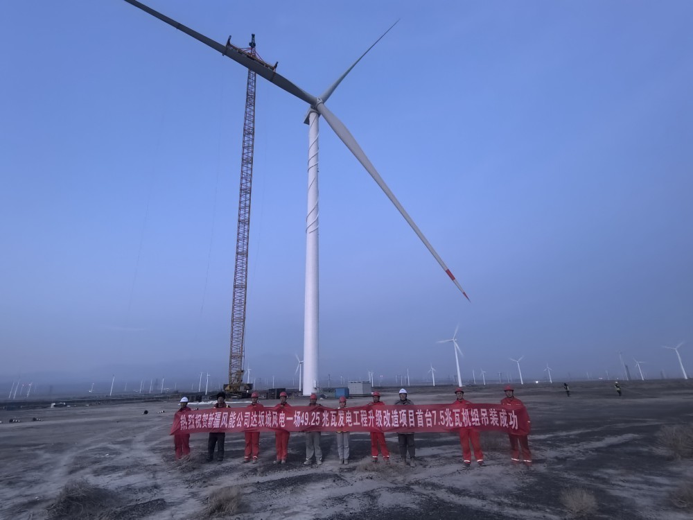 新疆風(fēng)能有限責(zé)任公司達(dá)坂城苜蓿臺風(fēng)電場首臺風(fēng)機順利完成吊裝